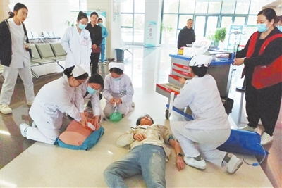 近日,九江学院第二附属医院开展“突发心脏骤停”专项应急演练,全体医护人员与患者熟悉新引进的AED(自动体外除颤器)的操作方法及突发心脏骤停的处置流程,确保患者生命安全。