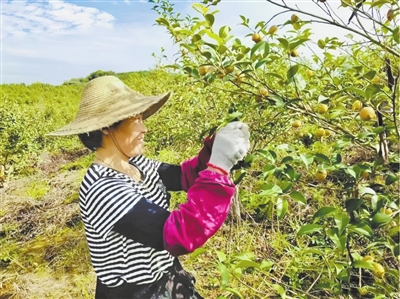 “以前在外面打工,一年忙到头,也顾不到家,现在家门口有公司招人种油茶,我就来了。”村民田雪梅边擦汗边说。她口中的“公司”就是江西和庐生态农业有限公司,在车桥镇建有三个油茶种植基地,共900亩,田雪梅就在离家最近的一处帮忙种油茶。