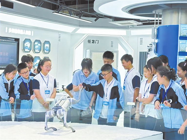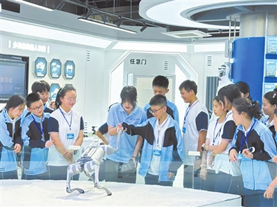 学生们先后参观了智能机器人、人机交互和工业自动化三大展区。迎宾机器人“克鲁泽”的智能互动、60台悟空机器人惟妙惟肖的舞蹈、AI山水画的创意呈现以及机械臂的精准作业,让学生们切身感受到科技的魅力。实践环节设置了星际通信编程、太阳系探索、无人机控制和自动驾驶模拟四大特色课程,学生们化身“星际工程师”,通过编程操作掌握科技原理,提升解决问题的能力。(熊朦雨 王紫微 摄)