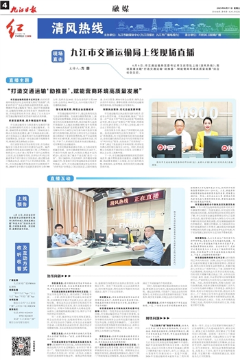 6月6日,市交通运输局党委书记邓玉训带队上线《清风热线》,围绕直播主题“打造交通运输‘助推器’,赋能营商环境高质量发展”回应社会关切。