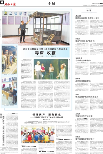 在柴桑区港口街镇港口村红色教育活动室内,一张朴素的木床静默伫立,岁月的痕迹清晰可见,仿佛在无声地诉说着90多年前那段烽火往事。近日,柴桑区港口街镇港口村村民何升银等人,将何见炎烈士早年从事地下工作时使用的木床、桌、椅接回故乡,并以此为核心展品创建红色教育基地,使这位26岁英勇就义的革命先辈的事迹得到郑重记述,重新焕发光彩,成为当地开展革命传统教育的生动教材。