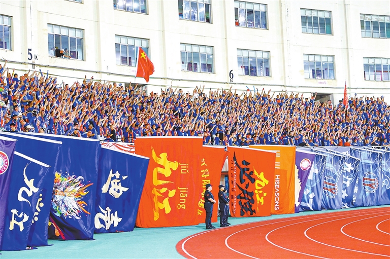 九江球迷为九江队加油助威。(本报记者 欧阳海员 摄)