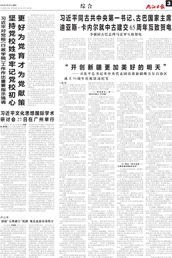 习近平同古共中央第一书记、古巴国家主席迪亚斯-卡内尔就中古建交65周年互致贺电