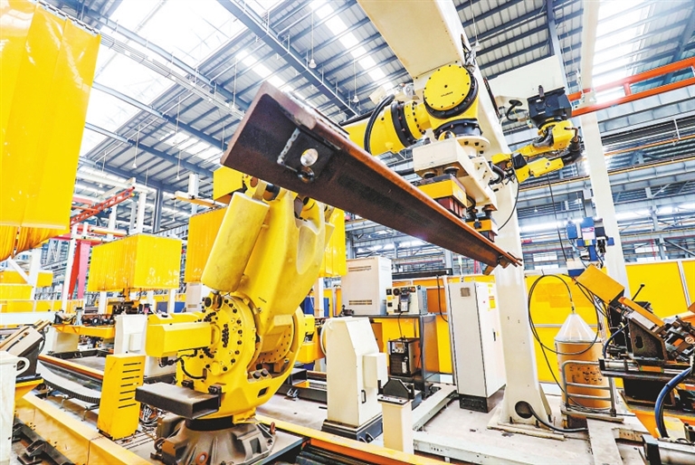 12月16日,在浙江省湖州市德清县雷甸镇的浙江建机德清精益智能工厂,机器臂在进行生产作业。