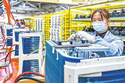 12月16日,在南京江宁高新技术产业开发区,工人在格力电器(南京)有限公司生产线上忙碌。(新华社发 辛 一 摄)