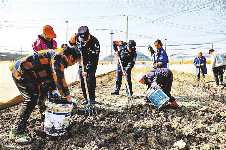 近日,共青城市公安局金湖派出所民警进村入户,来到田间地头,针对岁末年初安全防范重点,一边帮农助农,一边向群众开展防火防盗防诈骗等安全知识宣讲,提示他们强化冬季用电用火安全意识,确保人身和家庭财产安全。(刘志坚 摄)