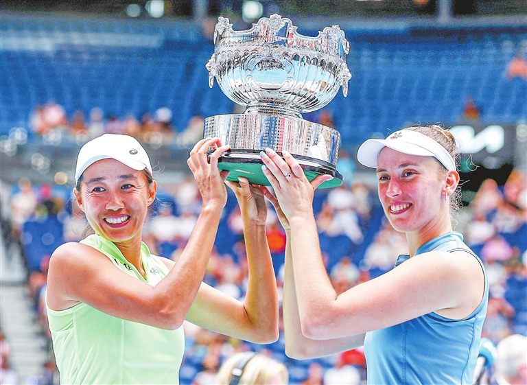 在31日进行的2026年澳大利亚网球公开赛女双决赛中,张帅搭档比利时选手梅尔滕斯以7:6(4)、6:4力克达尼丽娜(哈萨克斯坦)/克鲁尼奇(塞尔维亚),夺得冠军。这是张帅继2019年澳网、2021年美网之后,职业生涯的第三座大满贯女双冠军奖杯。